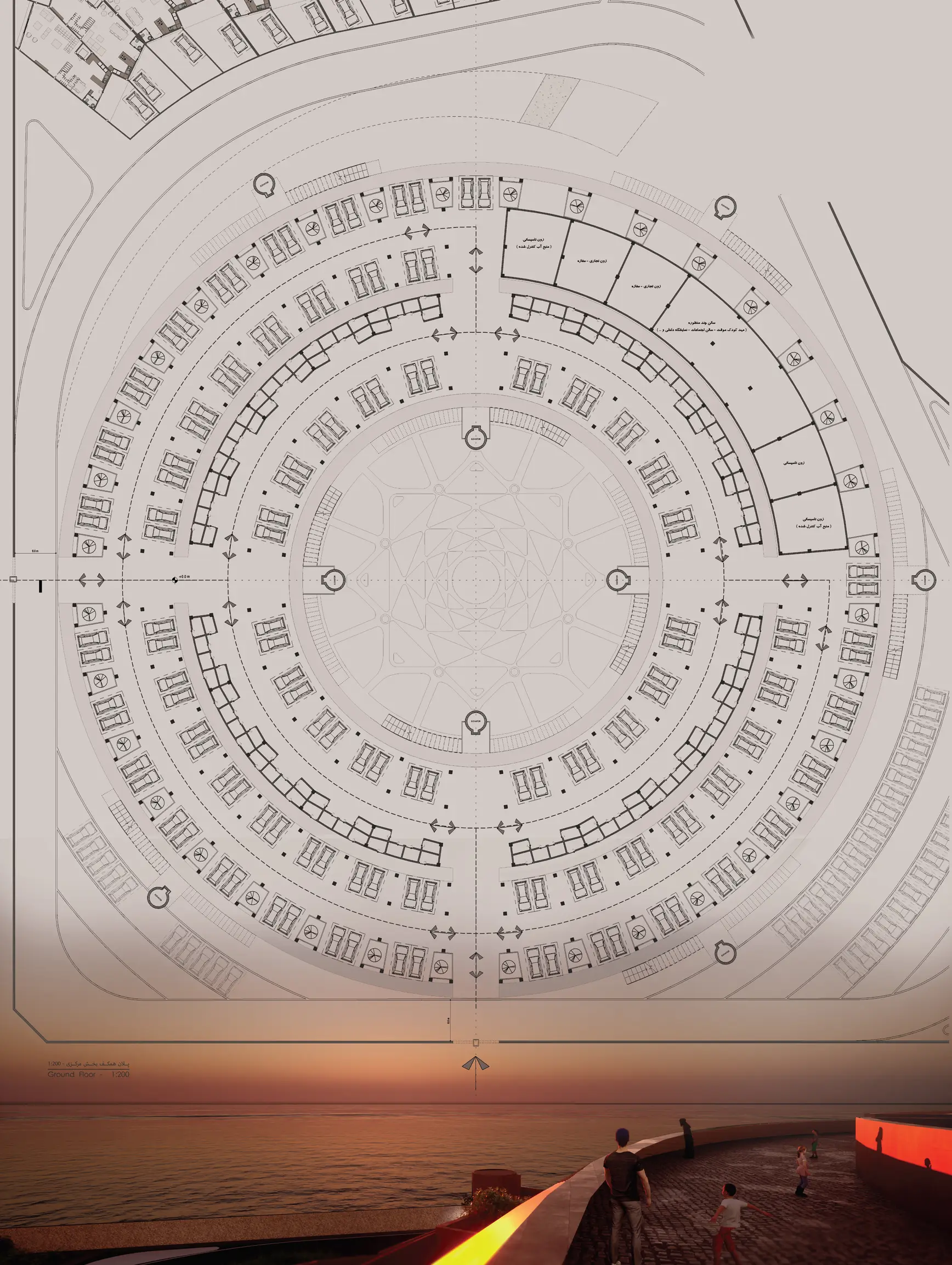 - حلقهی فوقانی: فضای جمعی با چشماندازی ۳۶۰ درجه به دریا و شهرک