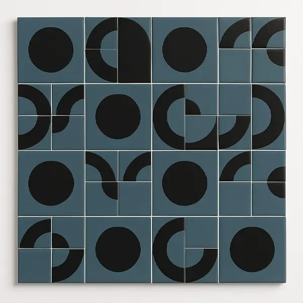 در این تکنیک، رنگها و فرمها بهصورت دستی روی سطح کاشیها نقاشی میشوند و سپس با پخت در کوره تثبیت میگردند. کاشی هامون با بهرهگیری از ترکیب رنگی عمیق – آبی خاکستری مات و مشکی یکدست – و استفاده از موتیفهای دایرهای، قوسدار و مینیمال، حس تعادل، تکرار و هارمونی بصری را القا میکند.