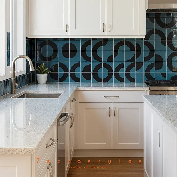 این تصویر نمایی از مجموعه کاشی هامون است؛ اثری که با بهرهگیری از تکنیک اصیل هفترنگ، مفاهیم مدرن طراحی را با سنت دیرینهی کاشیکاری ایرانی درهم آمیخته است.
