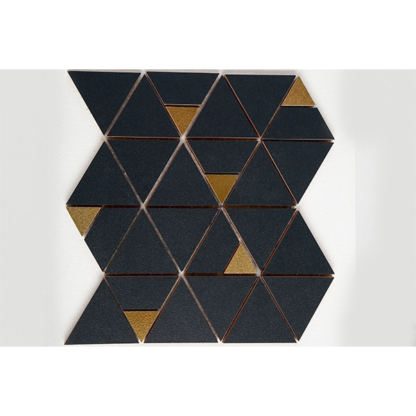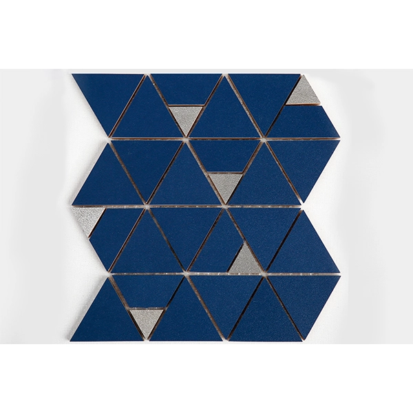 موزاییک مثلثی پرسلان، ترکیبی از طراحی هندسی مدرن و ظرافت متریال‌های خاص است. این محصول از قطعات مثلثی با سطح مات و جزئیات نقره ای درخشان ساخته شده که با کنار هم قرار گرفتن، الگویی منظم و چشم‌گیر ایجاد می‌کنند.